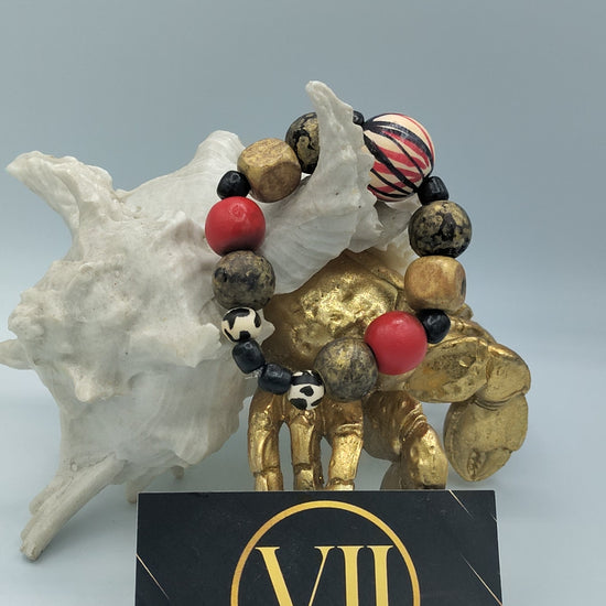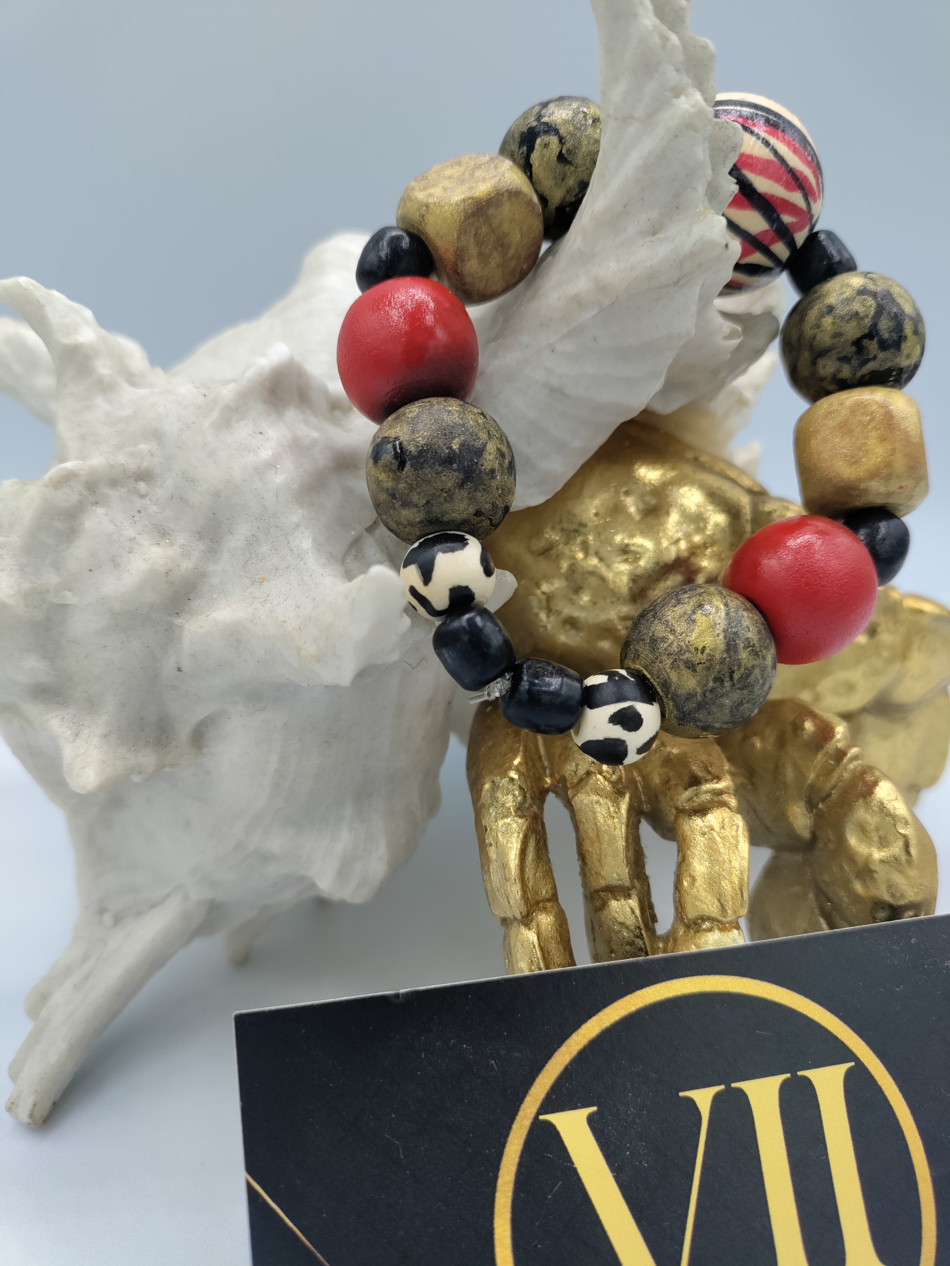 Unique multicolored hand painted wooden beaded bracelet